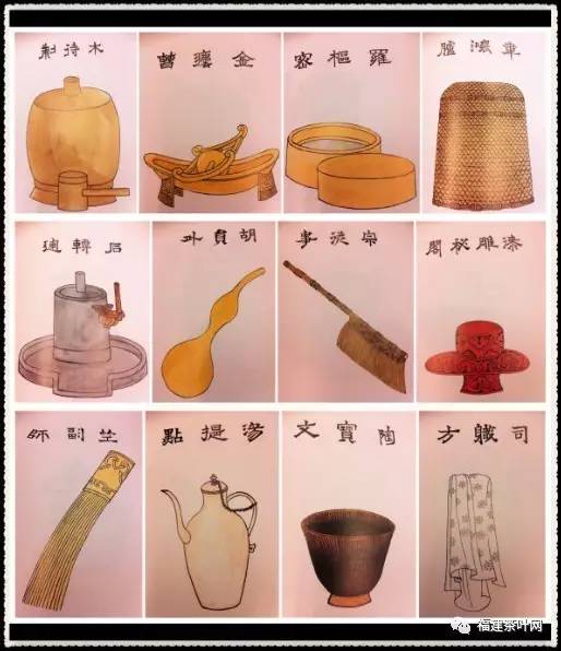 《茶具图赞》是现存最古的一部茶具图书,是一部关于点茶道茶具的图录,从中可见宋代点茶道茶具的形制。书中一图一赞,对点茶道茶具的功能、特征和文化性作了生动的描述,是反映点茶道的一部经典茶书。