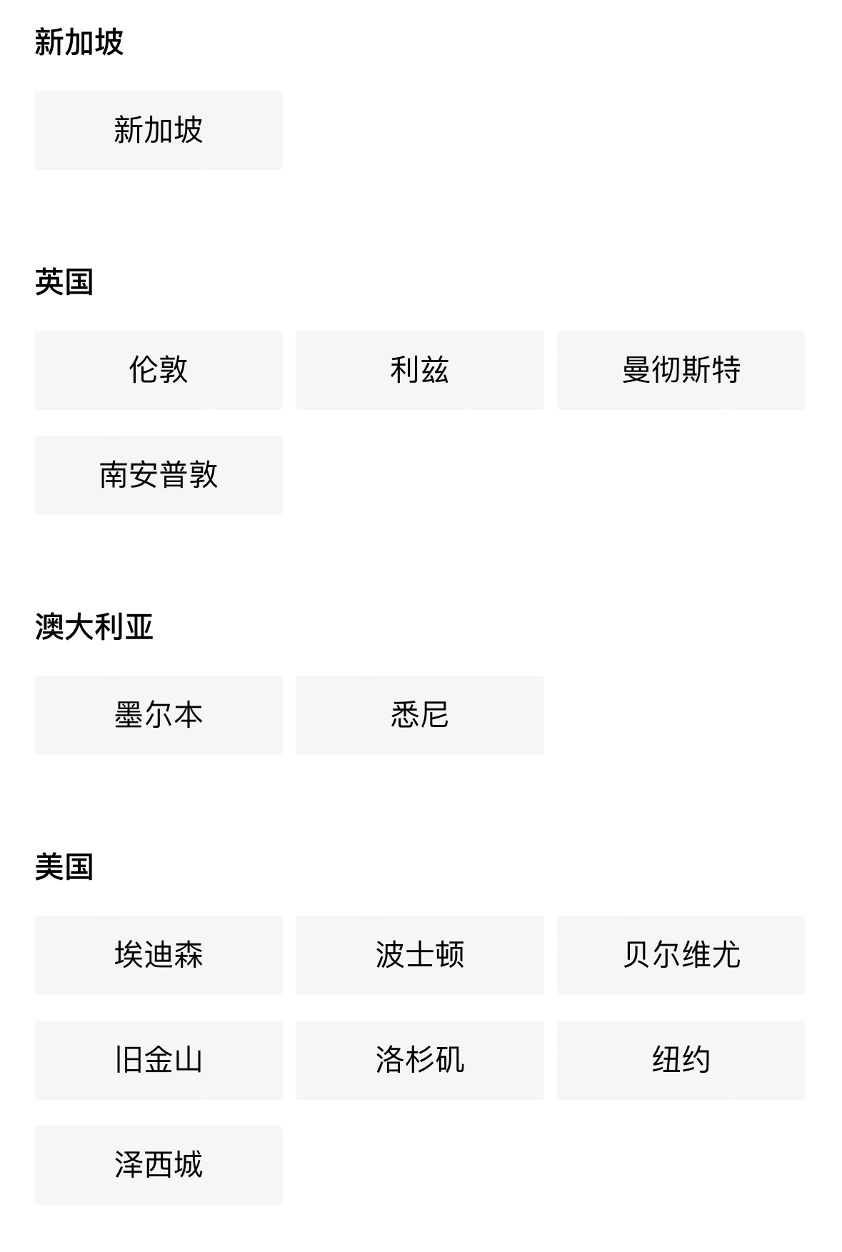 喜茶小程序显示,目前已在新加坡、英国、美国、澳洲、韩国、马来西亚、加拿大7个国家布局门店,目前已开出22家门店,即将开出45家。其中,英国现有门店7家,即将新增5家;美国已开出2家,即将新增22家。