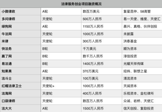 巨头进场,证明了这个领域的成熟度已经来到了新的标准线上。当然同时也应该看到,在这个有着浓重O2O基因的领域里,巨头并没有掀起过快的收割效果。因为法律服务的流程很长,个性化需求旺盛,因此巨头并没有给创业者造成太对恐慌。