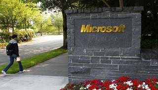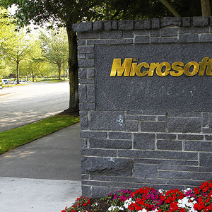 在寻找了一大圈之后,好不容易找到了一座楼前有微软LOGO的建筑。
