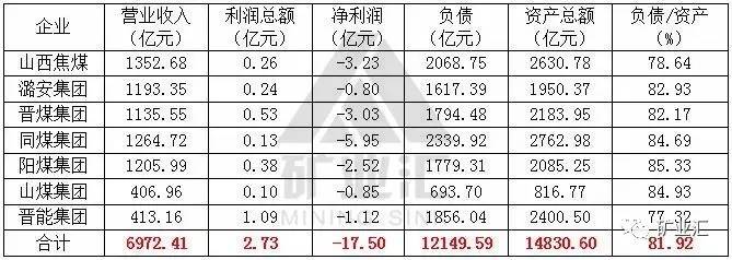 净利润全部为负,资产负债率都高于70%,阳煤集团负债率高达85.33%。