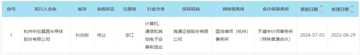 7月3日,上交所宣布,因其财务资料已过有效期且逾期达三个月未更新,终止对杭州中欣晶圆半导体股份有限公司(简称“中欣晶圆”)首次公开发行股票并在科创板上市审核。