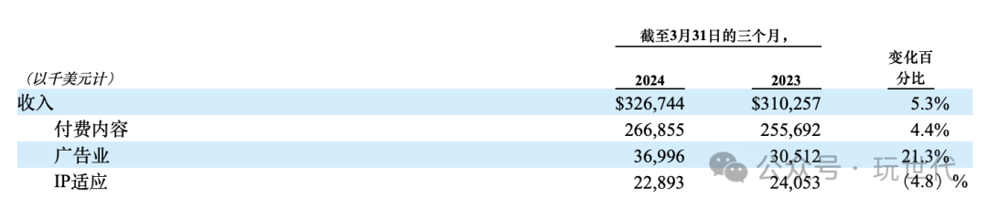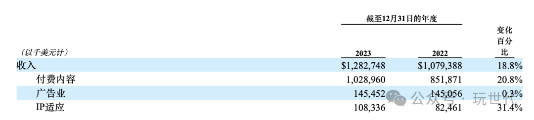 三大营收来源:内容付费、广告和IP版权开发,内容付费依然是绝对主力,2023年付费内容营收贡献占比80.2%,达10.29亿美元,并且同比增速超20%。(2022年内容付费营收8.5亿美元)