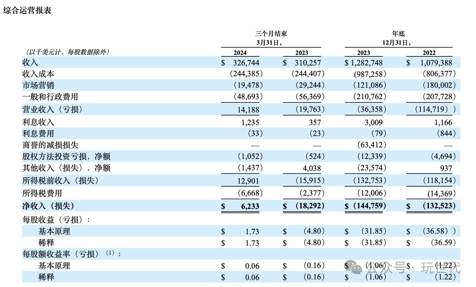 2022年和2023年,Webtoon年营收分别为10.8亿美元和12.8亿美元,亏损也从1.3亿美元扩大到1.4亿美元,亏损持续扩大;仅在上市前的2024年第一季度营收转正,利润623.3万美元。