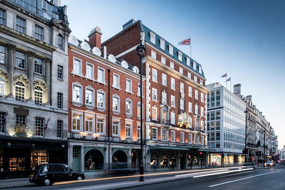 F&M 的旗舰店位于伦敦热闹的 Piccadilly 大街上,它已经在这里站立了 300 多年,商场设计优雅华贵,和附近的丽思卡尔顿酒店相映成趣。传统的建筑体传递着浓浓的英伦气息,室内空间明亮华丽,如同一个现代城堡。