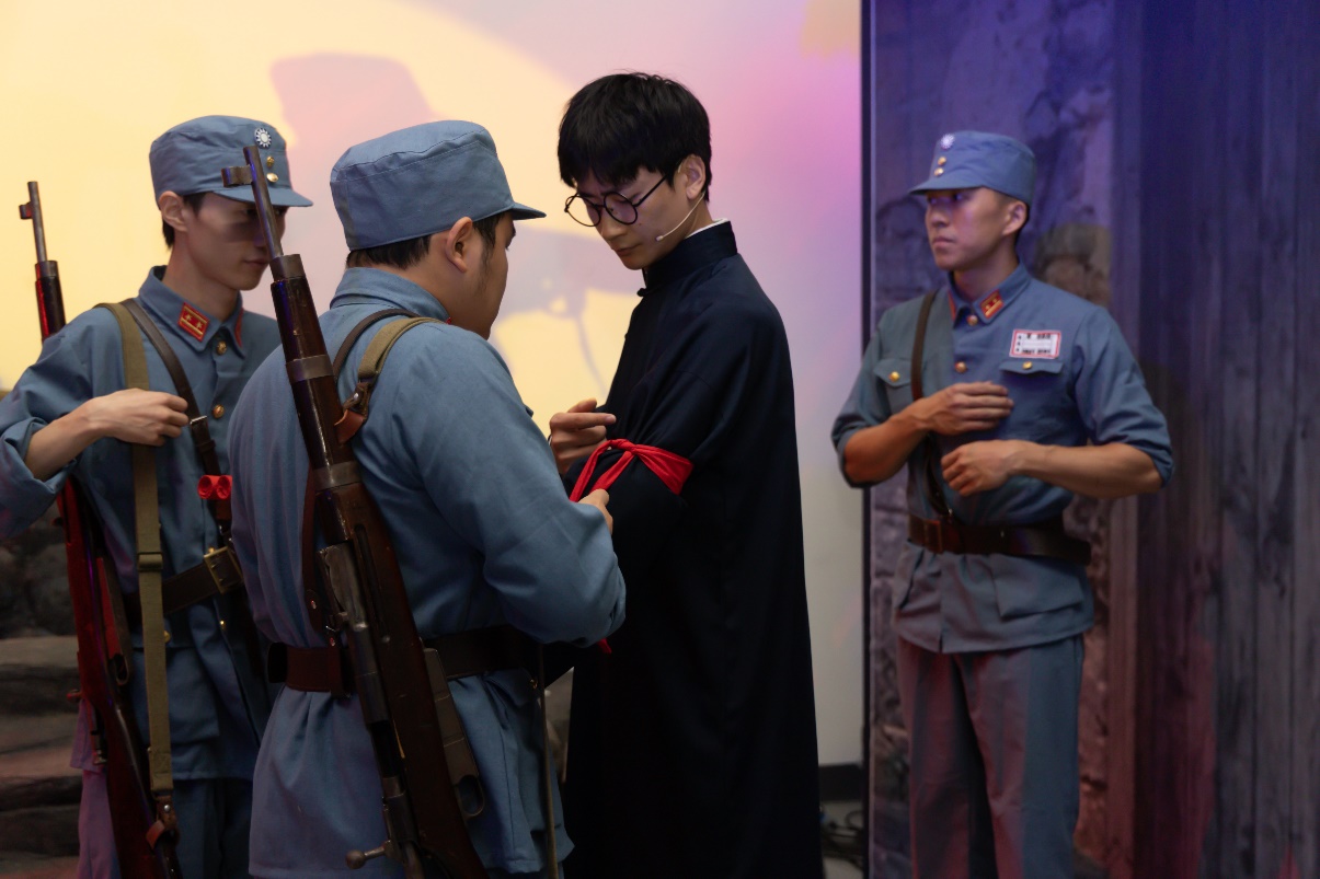 “永远记得那个早上,为求真理你走向远方,从此头顶沉沉黑夜,从此脚踏山路长长……”7月5日上午,龙泉驿区东安湖畔,热血沸腾。以英烈董朗和旷继勋的革命故事为原型的红色沉浸式音乐话剧《热血澎湃致青春》在东安湖大运会博物馆微剧场火热上演,大运青年拼搏奋斗的热血青春与革命先烈的救国心、天府情、成都爱交相辉映,为党的103周年生日献礼。
