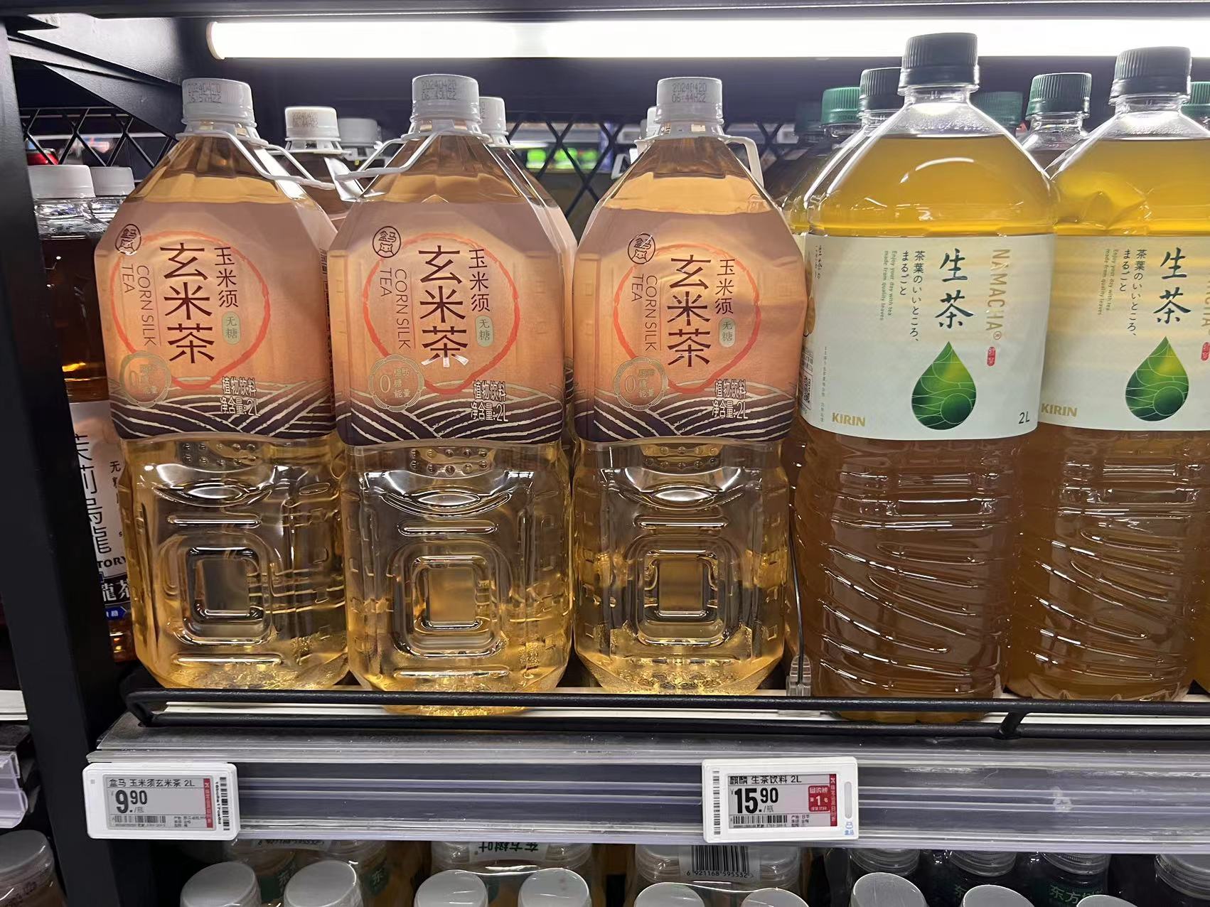900ml左右是市面上常见的大包装规格,比如元气森林燃茶、东方树叶、茶小开、果子熟了等等;而也有品牌推出超过1L的更大包装,比如康师傅、统一、三得利等等。麒麟生茶、有丛气、盒马甚至推出了2L的超大包装。