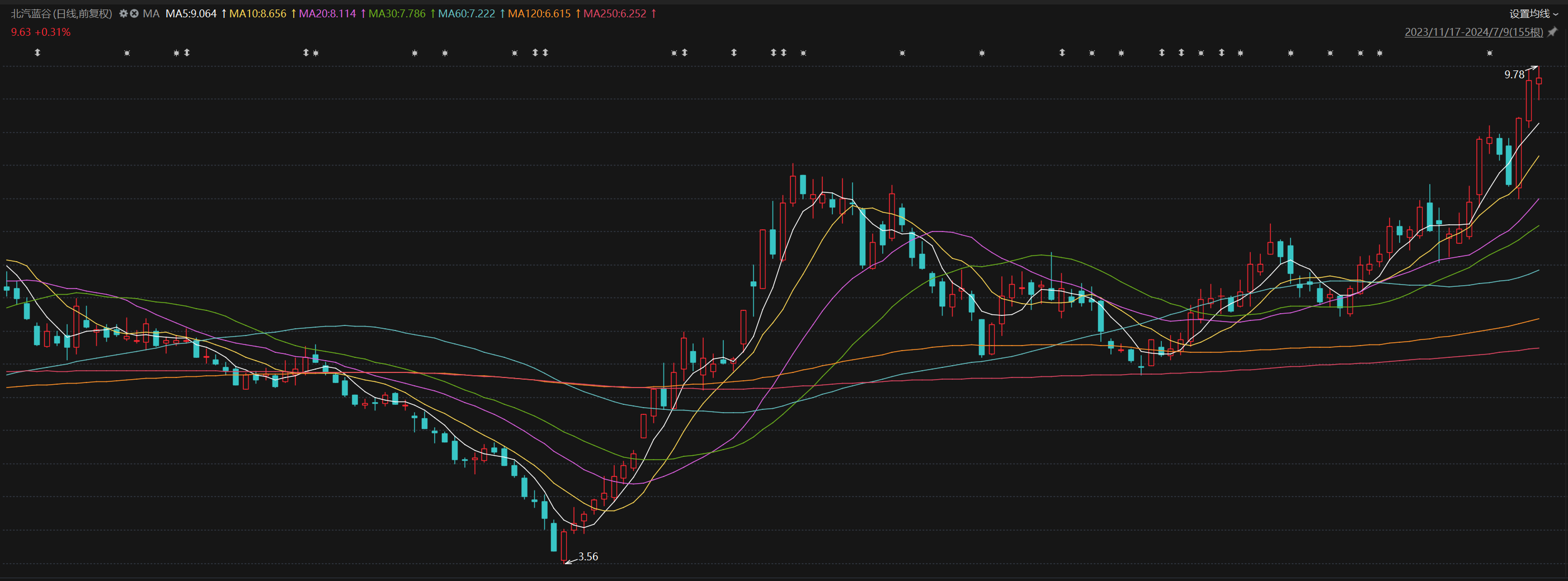 7月9日,北汽蓝谷(600733.SH)收涨0.31%,报9.63元/股,较2月6日的年内低点3.56元/股上涨超170%。公司7月9日全天换手率达9.81%,成交额45.35亿元,总市值537亿元。