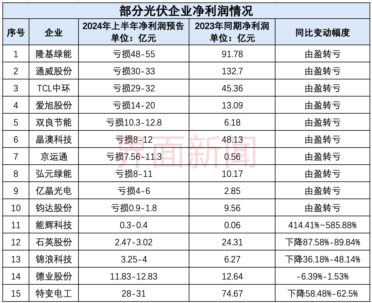 7月9日晚,上市公司密集披露上半年业绩预告,光伏行业成了“重灾区”,多家企业出现巨额亏损。