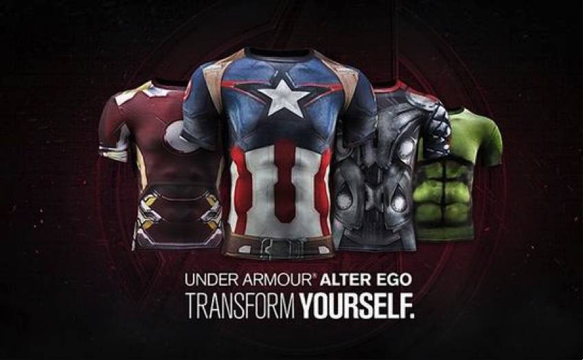 其实,Under Armour并非一头扎进专业运动领域的“书呆子”。早在2013年就曾推出超人及蝙蝠侠系列服饰引发抢购,2015年《复仇者联盟2》上映之际,又再次出手,将雷神索尔、绿巨人浩克、美国队长和钢铁侠的形象印在了公司最畅销的运动压缩服装上,让超级英雄的粉丝们轻松变身。