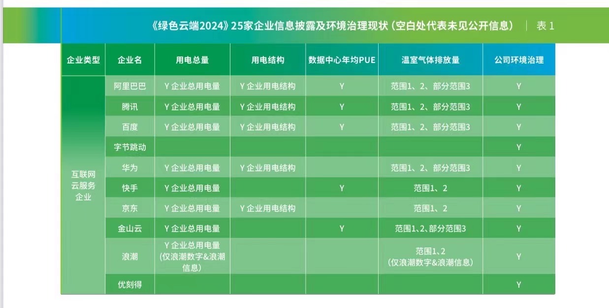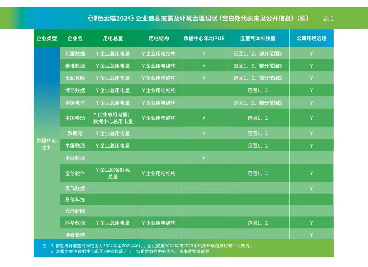 例如,包括字节跳动、光环新网在内的少部分企业尚未公开披露用电量、可再生能源消纳比例、温室气体排放总量等关键环境信息,因此无法全面评估其在节能减排、可再生能源利用方面的进展。