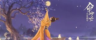 比如网上公布的柳小婵表演的《月中仙》这一段,可谓是《伞少女》制作细致入微的最佳体现。在这段情节里,柳小婵乘船而来,在月下翩翩起舞,飘逸的水袖与悠长动人的唱词融合在一起。当其从岸边梨花树上取下梨花簪,画面转向深沉的湖水,柳小婵忆起母亲与自己的童年点滴,银幕前的观众也逐渐能理解柳小婵内心的寂寥和对母亲的相思之情。这段情节充分使用了中国绘画里虚实结合的手法,从视觉上拉开场景中不同物体之间的距离,加强画面的空间感,不仅让柳小婵与母亲的这段蒙太奇恰到好处地切入到她的表演和唱词中,也体现了唱词中“月盈露冷步九天,仙裙飘飘云水间”的意境之美。