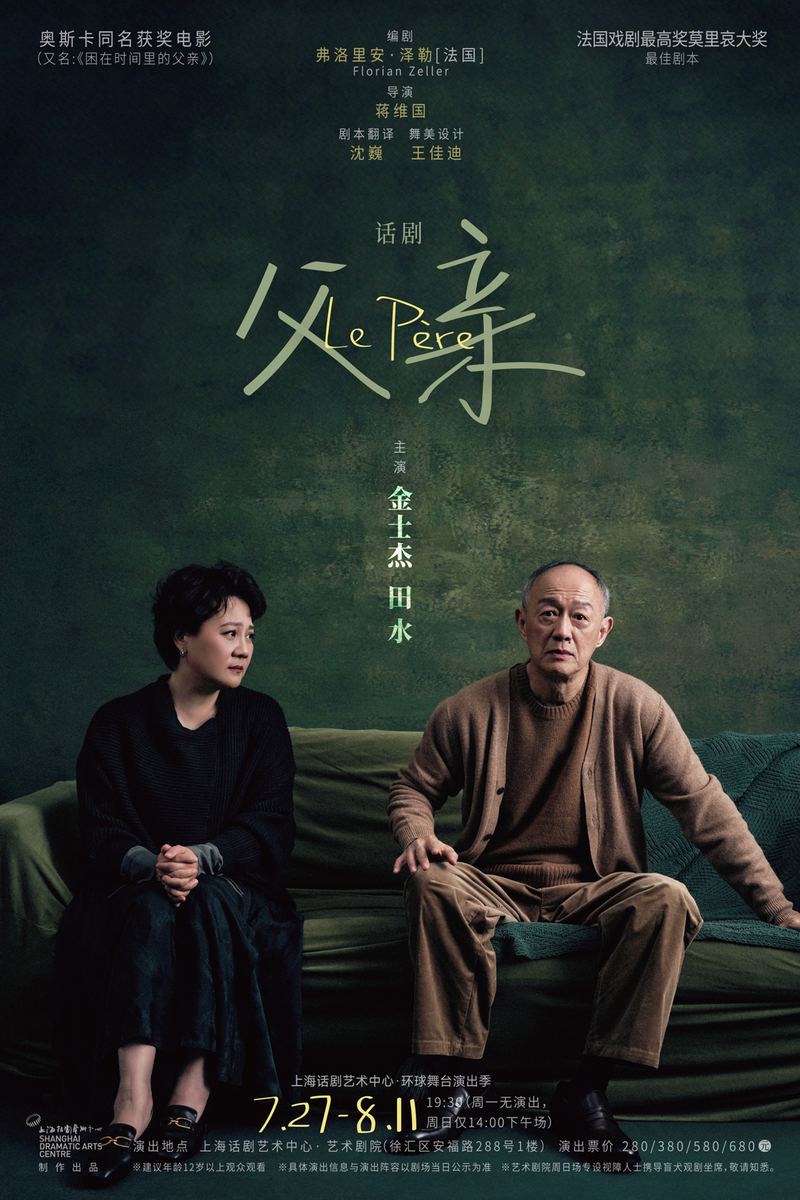 话剧《父亲》讲述的是一位患有阿尔兹海默症的父亲和他女儿的故事,在与女儿的相处过程中,困在时间里的父亲不断陷入记忆与现实交错的漩涡。话剧《父亲》曾于2014年获得了法国重量级戏剧奖项、“莫里哀戏剧奖”最佳剧本,并于2015-2016年提名托尼、劳伦斯·奥利弗等多个戏剧奖项的最佳剧本奖。同名电影(又名《困在时间里的父亲》)由安东尼·霍普金斯和奥利维亚·科尔曼主演,霍普金斯凭借此片获得第93届奥斯卡金像奖最佳男主角,成为奥斯卡历史上年龄最大的最佳男主角。