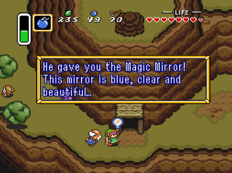 宫本茂及手冢卓志,以及一支小设计团队,开始了16位世代塞尔达作品的开发工作。手冢卓志一开始选择以《超级马里奥兄弟 2》的一些元素为素材设计游戏,比如拾取和投掷道具。同时沿用《塞尔达传说》初代的俯视角。这一简单的举动使得游戏能够容纳更多全新的谜题和战斗。手冢卓志还极富卓见地采用了另一马里奥中使用的设计:里世界。