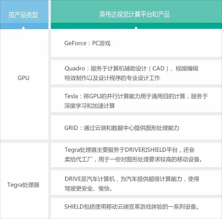 表:英伟达产品类别