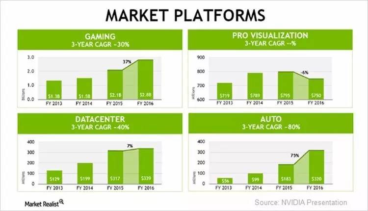 图:FY2013-2016英伟达四大市场营收数据