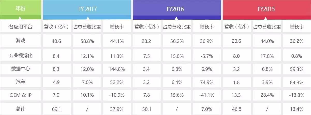 表:FY 2015-2017英伟达各市场营收数据,注:英伟达财年一般截止当年1月底。