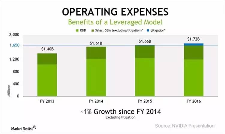 图:英伟达2013-2016财年营业费用构成及变动