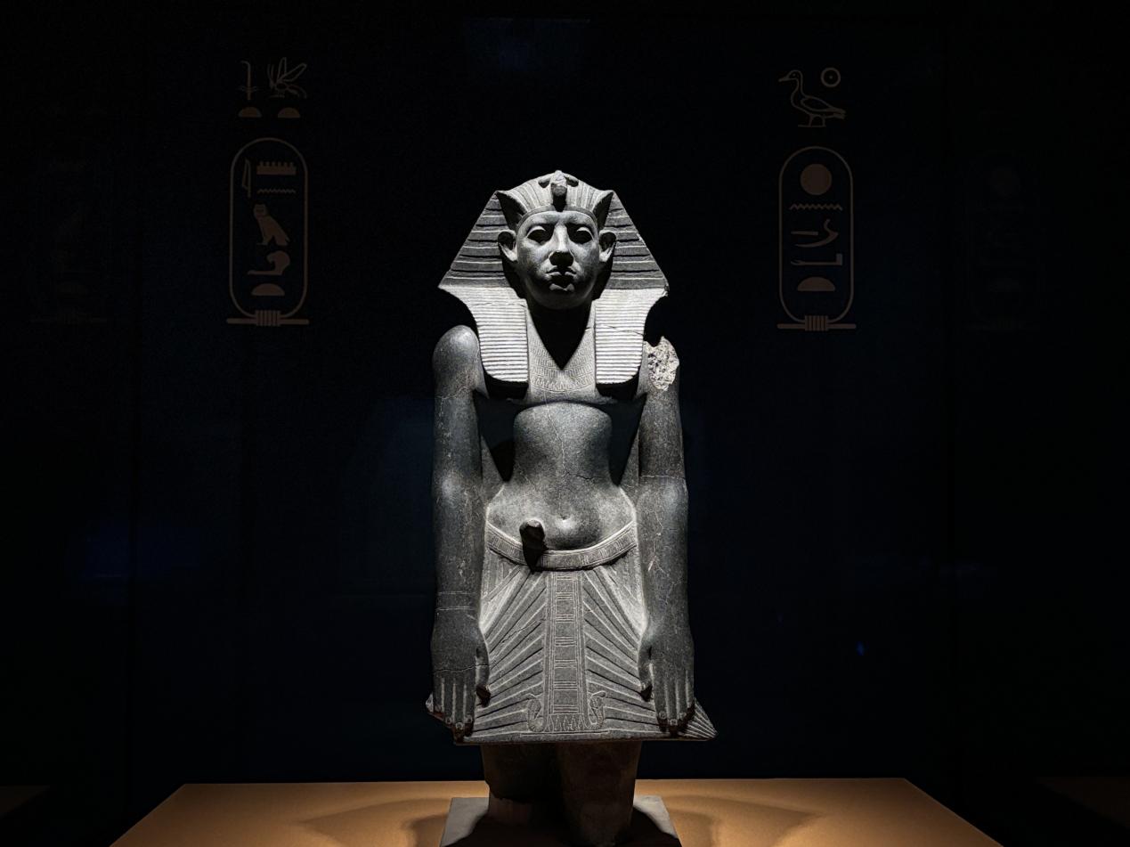 “法老的国度”展厅面积约1500㎡,从史前到希腊罗马时期的埃及文明版图在此徐徐展开。这场跨越将近3000年的文明之旅,从古埃及人的宇宙观开启,沿着埃及历史文明中的神圣王权、贵族群体、工匠技艺、文人生活、信仰世界和墓葬习俗等脉络,向观众揭开古埃及文明的神秘面纱。