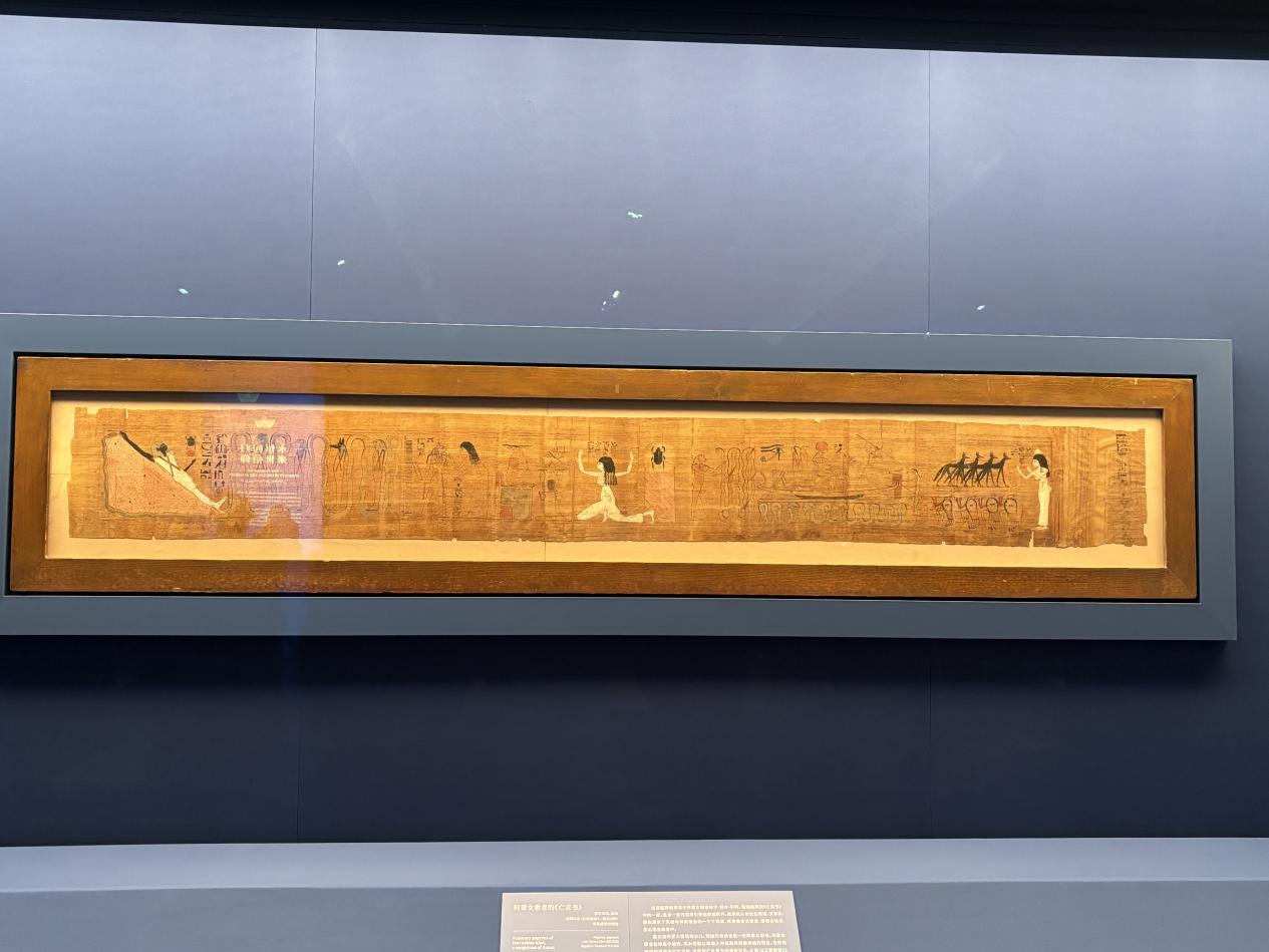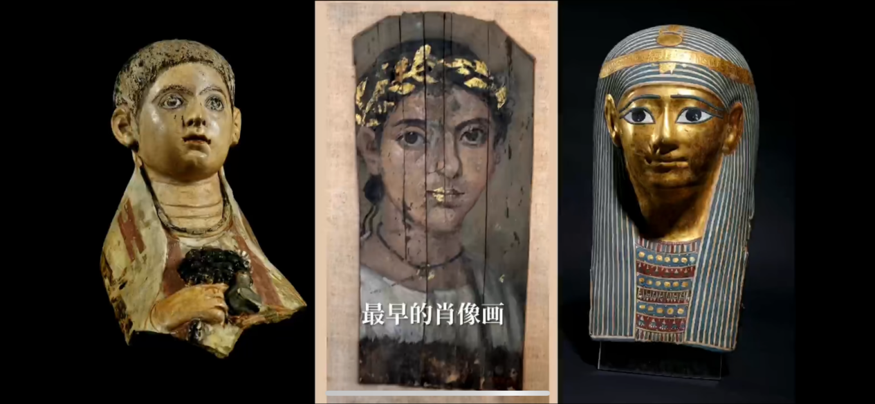 “法老的国度”展厅还呈现了观众熟知的古埃及木乃伊面具、亡灵书、人形棺,以及希腊罗马时期出现的肖像画,精美肖像画的出现也象征着古埃及进入了文化交融的“双面社会”。