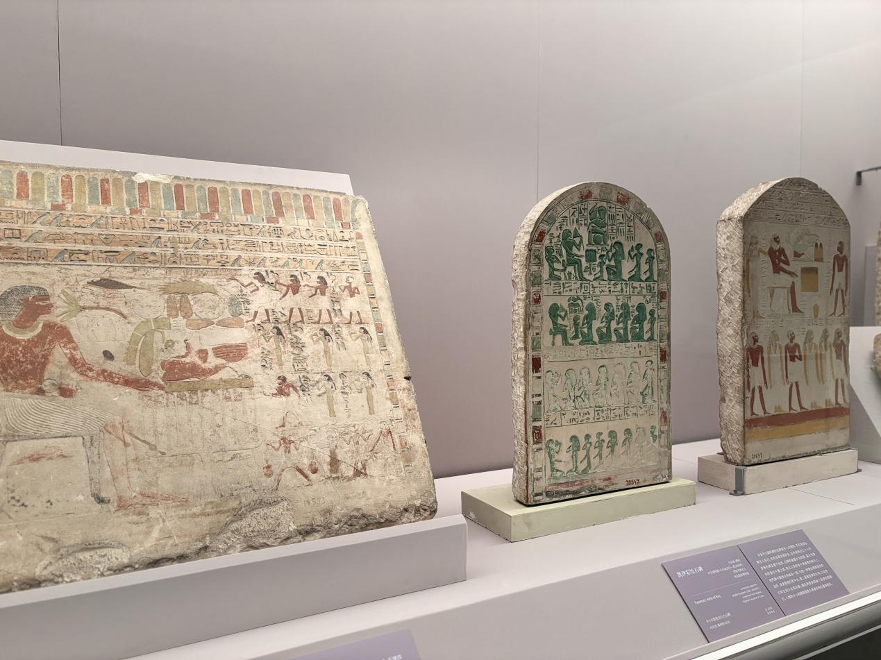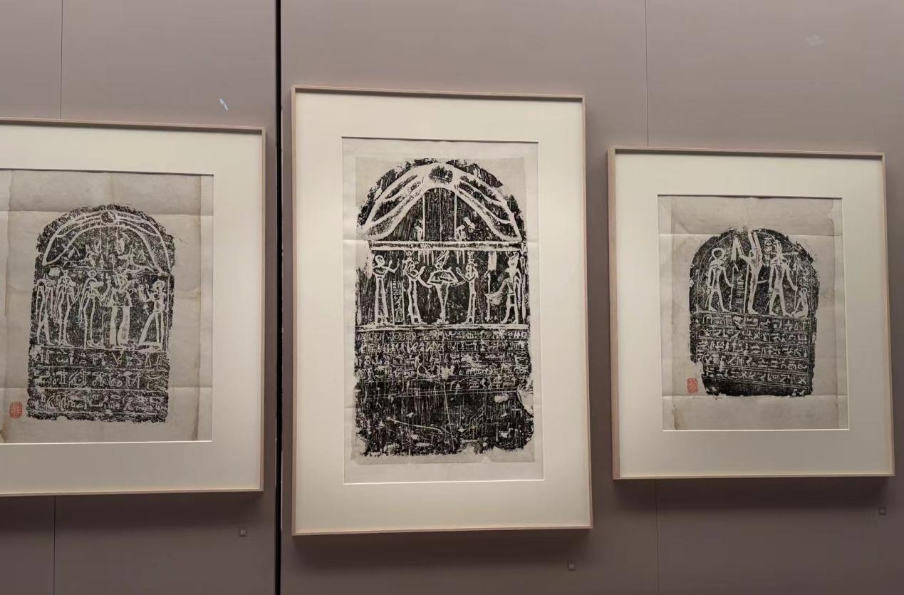 在彩绘石碑与古埃及文字展区,颜海英提到一桩往事:中国清朝大臣端方在出洋考察时初见古埃及石碑,便购买回来,用金石学的方法制作复制品、拓片,并模仿古埃及石碑的图案和铭文进行创作,表现出了对同类古文明的强烈好奇与欣赏。颜海英还提到了中国第一个埃及学博士夏鼐先生的《埃及古珠考》,认为这是中国对古埃及文明探索中难以超越的巨作。未来,中国对于古埃及的研究只会走向更新的突破与更深入的合作,他说。