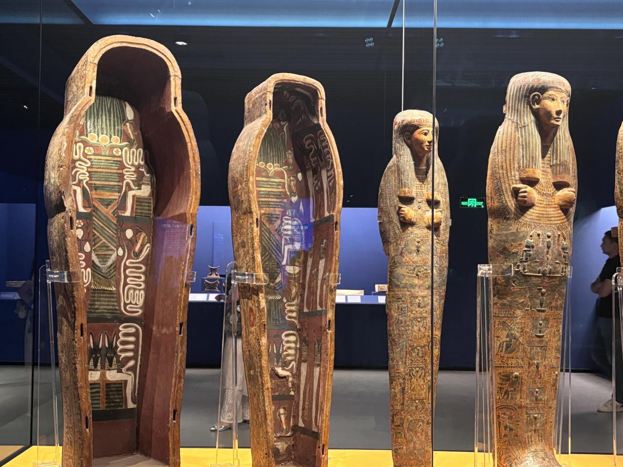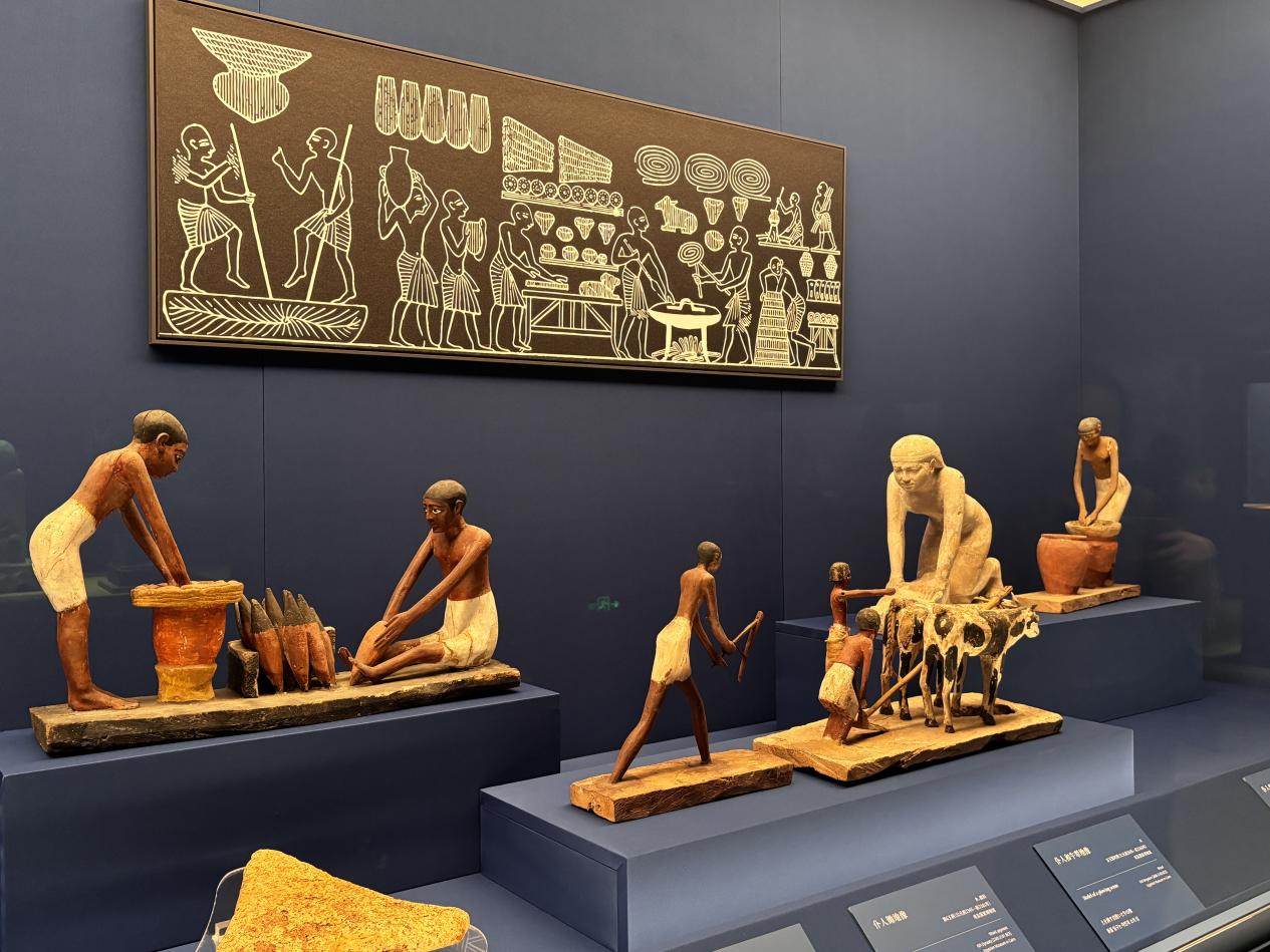 本次展览以“文明的对话”为主题,最大亮点是埃及与中国的对比。展览首席策展人、北京大学历史学系教授颜海英介绍到,“法老的国度”展厅不仅展出了涵盖社会制度、日常生活和精神世界的古埃及文物,还呈现了若干中国文物,“这场由我们独立策划的展览,亮点之一便是中国文物和埃及文物的穿插展示与对比,将中国视角和古埃及视角结合起来,更好地让观众以古文明后代的视角来观看和理解历史。”