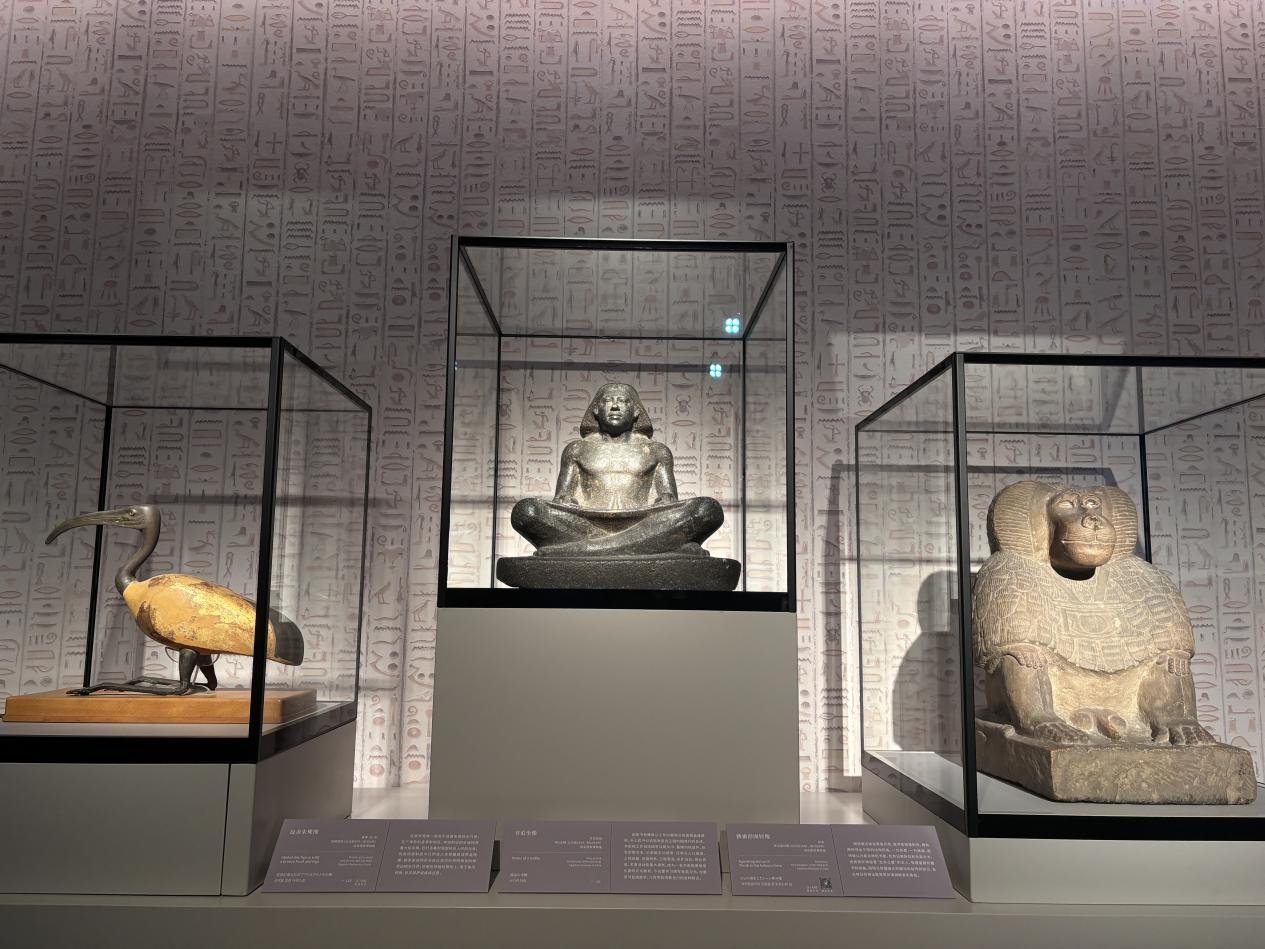 本次展览花费不少篇幅讲述了古埃及的智慧神——托特(Thoth),古埃及盛行着一个与古代中国相同的理念——“万般皆下品,唯有读书高”,要想做官,数学、天文学、地理等方面的知识都要学。“学生们可以来这里拜一拜智慧神了,”颜海英笑着说道。