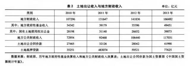 国土资源部信息中心郭文华和张迪的研究论文更指出,将2013年全国土地出让价款、直接来源于房地产的税收收入、土地抵押贷款三者相加,与地方财政收入进行比较,得出2013年地方财政对土地收入依赖度高达87.5%。