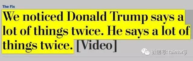 另外,特朗普还喜欢把一句话反复说好几遍。《华盛顿邮报》曾发过这样一篇文章:
