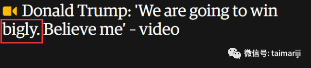 2016年5月《卫报》的一则新闻,《卫报》的编辑显然以为特朗普说的是“bigly”。