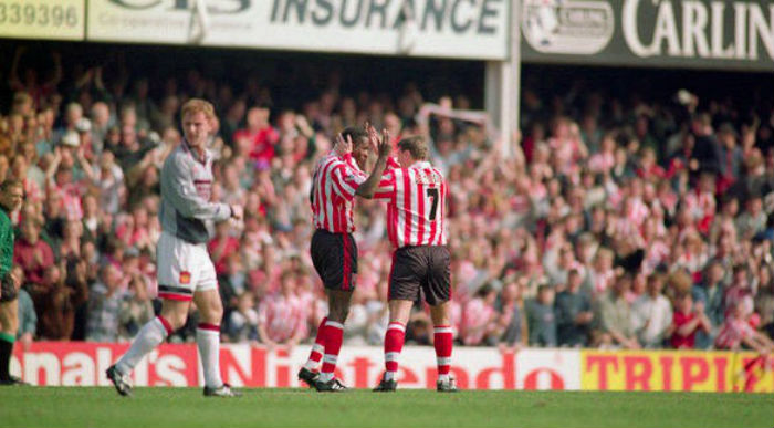 1996年4月,曼联队做客挑战南安普顿队。在此前的12轮比赛,曼联赢下了11场,在积分榜上超过了纽卡斯尔排在了榜首位置。赛前外界普遍认为,曼联的脚步已然不可阻挡,然而面对深陷降级区的南安普顿,他们却出人意料的遭到了对手顽强的抵抗,而且吞下了一场在很长时间之后依然让人记忆犹新的败仗。