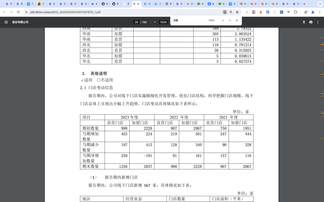 良品铺子的加盟模式是全托管模式,而去年开始,良品铺子的加盟门店第一次开始下滑。数据显示,2023年度,良品铺子加盟门店档期净减少了191个,这是三年来首次。