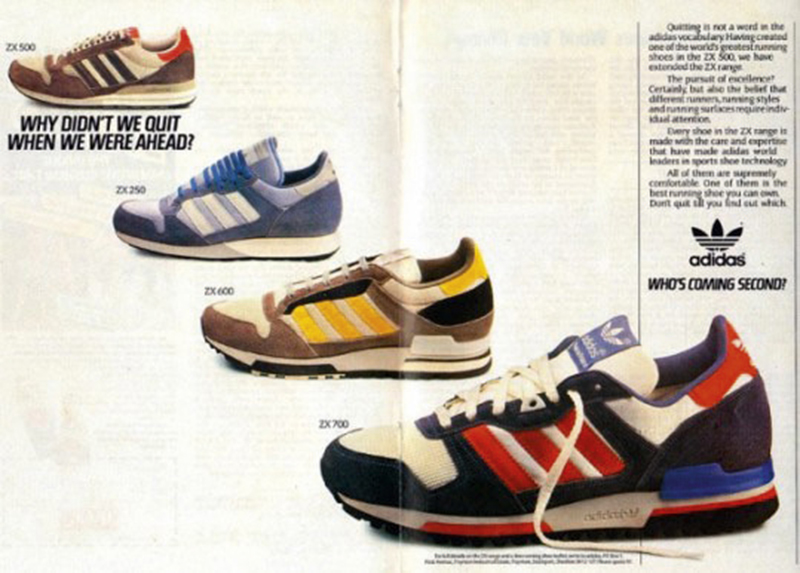 而 adidas 的老本行--跑鞋,在八零年代推出了传奇的 ZX 系列,虽然在当时的跑鞋市场刚刚展露头角,风头又被年轻黑马碾压,但经典就是经典, ZX 系列慢跑鞋至今仍然是年轻人最爱的慢跑鞋系列之一(销量比 New Balance 也不落下风)。