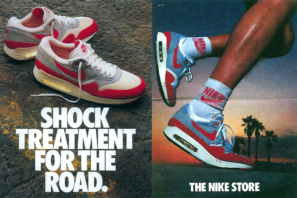相比 Air Force 1 内置气垫的克制,在 Air Max 1 上,Nike 则选择霸气侧漏的开窗式气垫,当时的跑者们都被“吓哭”了,纷纷掏钱买买买!