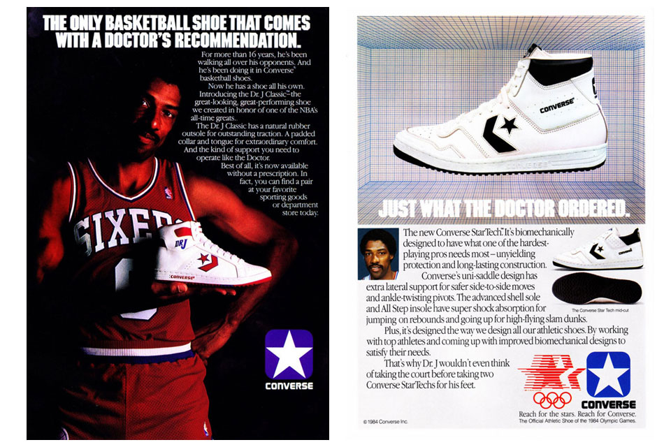 adidas 的篮球鞋里最受欢迎的,是现在所谓“板鞋”的 Pro Model 和 Superstar,不过事情怎么会这么简单,1980 年代初,adidas 眼看要“一统天下”的时候,这两双红到日天的球鞋却意外地被一老一少两匹黑马无情绞杀,无论是科技、代言还是出镜率上都被完爆。