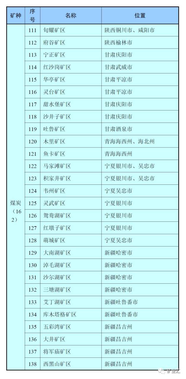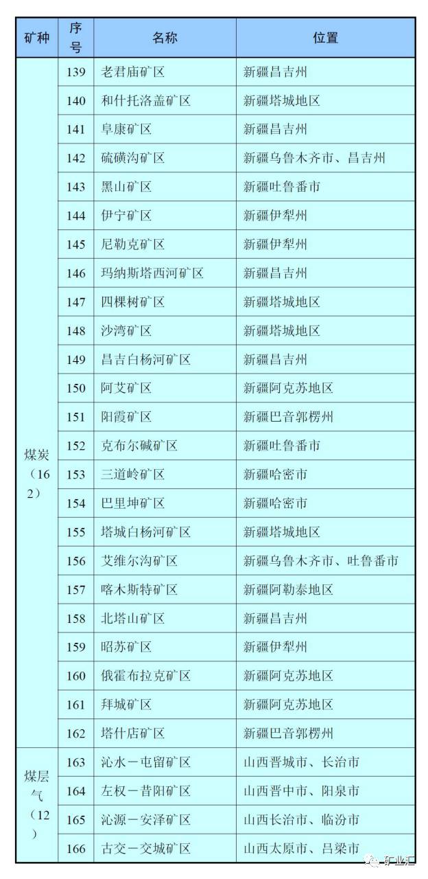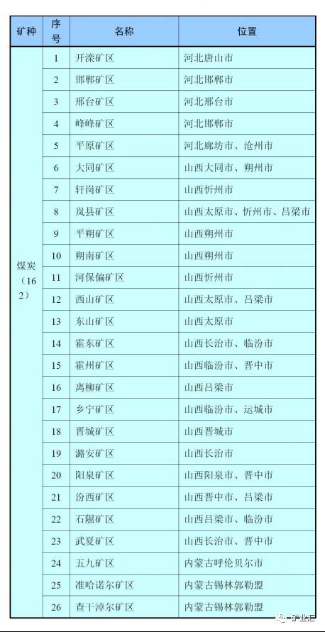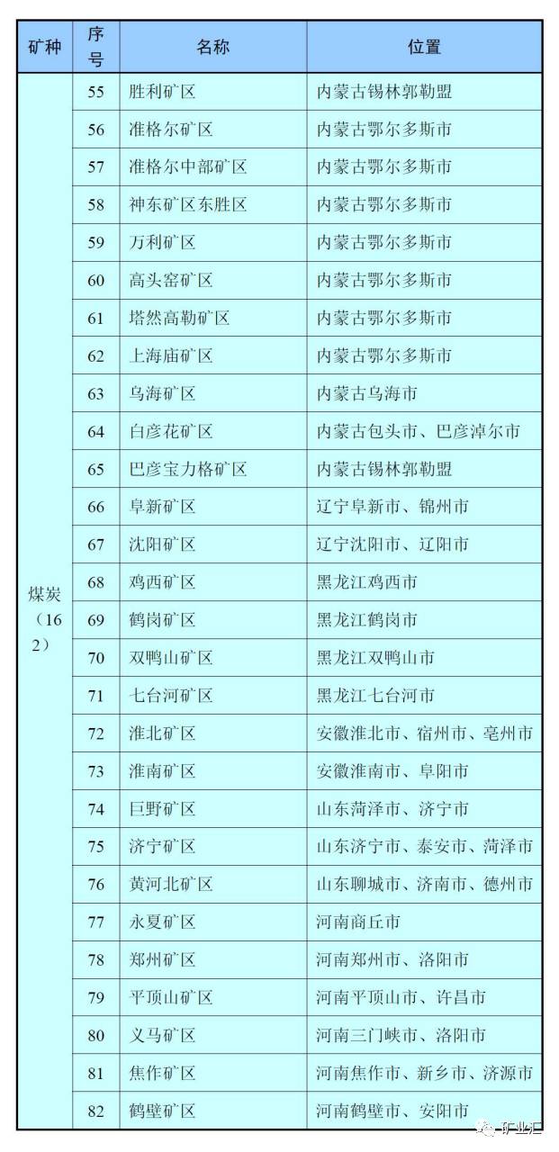 在2016公布的《全国矿产资源规划(2016-2020年)》中共有162个国家煤炭规划矿区,12个国家煤层气规划矿区。