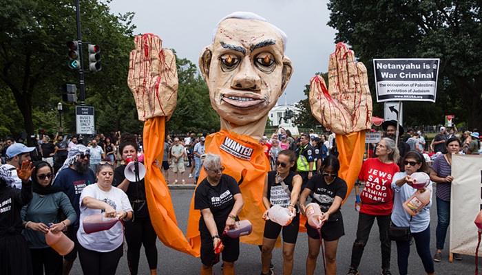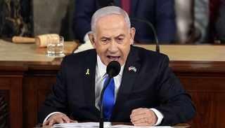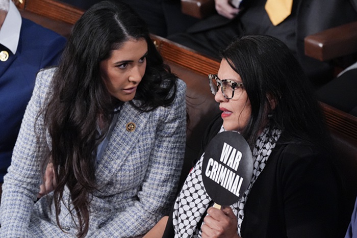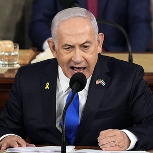 在美国国会,内塔尼亚胡的演讲遭到了一批议员抵制。超过60名民主党议员拒绝在国会观看内塔尼亚胡演讲,包括民主党大佬、众议院前议长南希·佩洛西。部分在现场的议员拒绝鼓掌、拒绝起立欢迎内塔尼亚胡,美国国会唯一的巴勒斯坦裔众议员拉茜达·塔利布则在座位上手举“战争犯”的牌子。