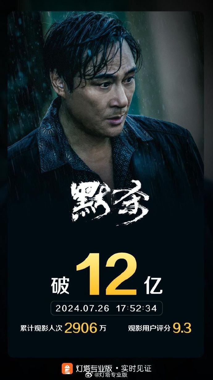据灯塔专业版实时数据,截至7月26日17时52分,影片《默杀》票房突破12亿元。