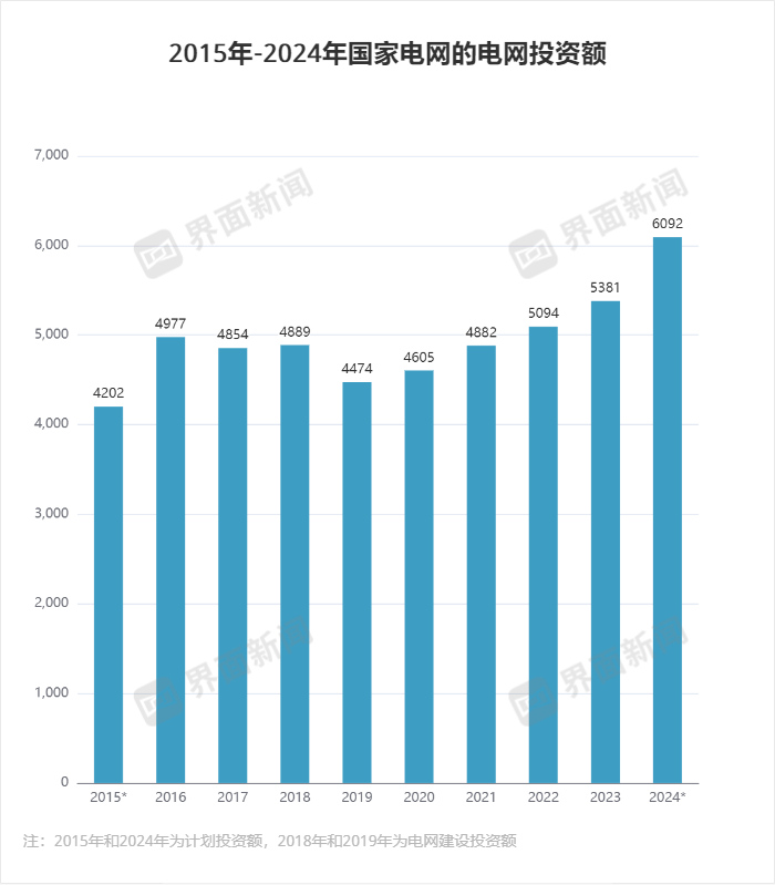该数额较此前国家电网“2024年电网建设投资总规模超5000亿元”的表述有了显著增加。