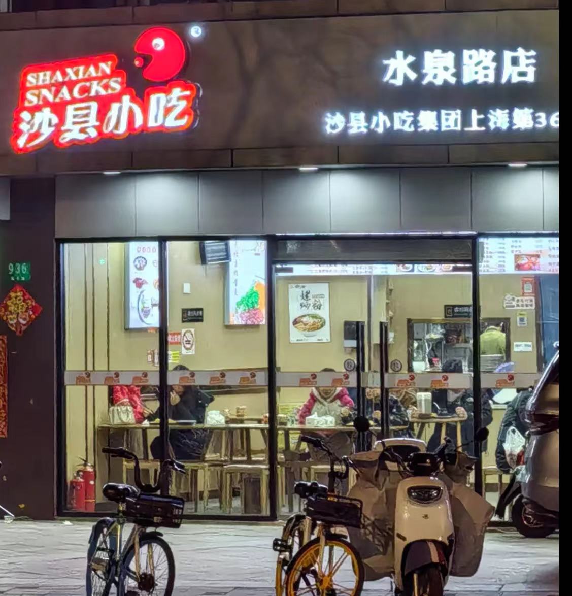 而这之中,被纳入小吃集团麾下的门店数量或许更少——一部分是加盟店,据《中国商报》2023年报道,该数量在全国约为4000家;另一部分是升级后的原有门店。它们的特点之一就是在牌匾上会有醒目的“沙县小吃集团xx地第xxx家店”字样。