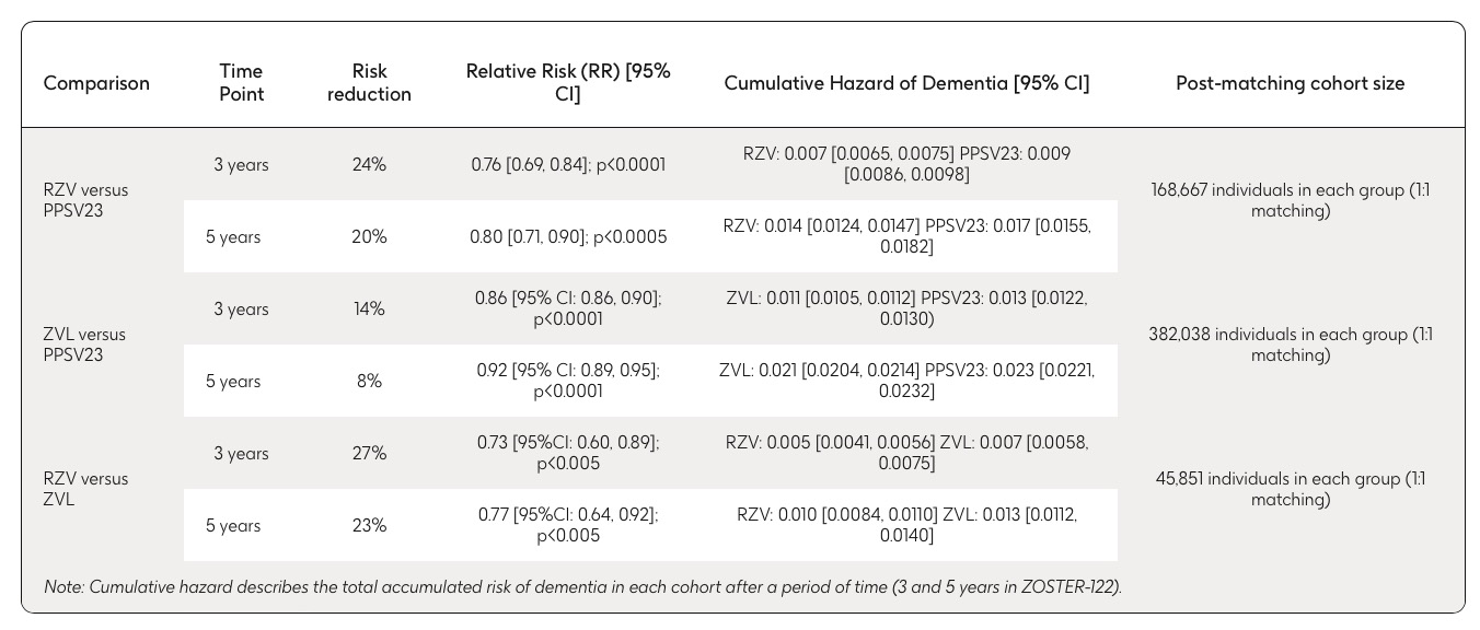 再看,带状疱疹重组疫苗Shingrix和灭活带状疱疹疫苗Zostavax的老年痴呆风险对比。