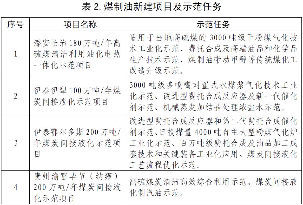 其中煤制油项目4个,储备3个。