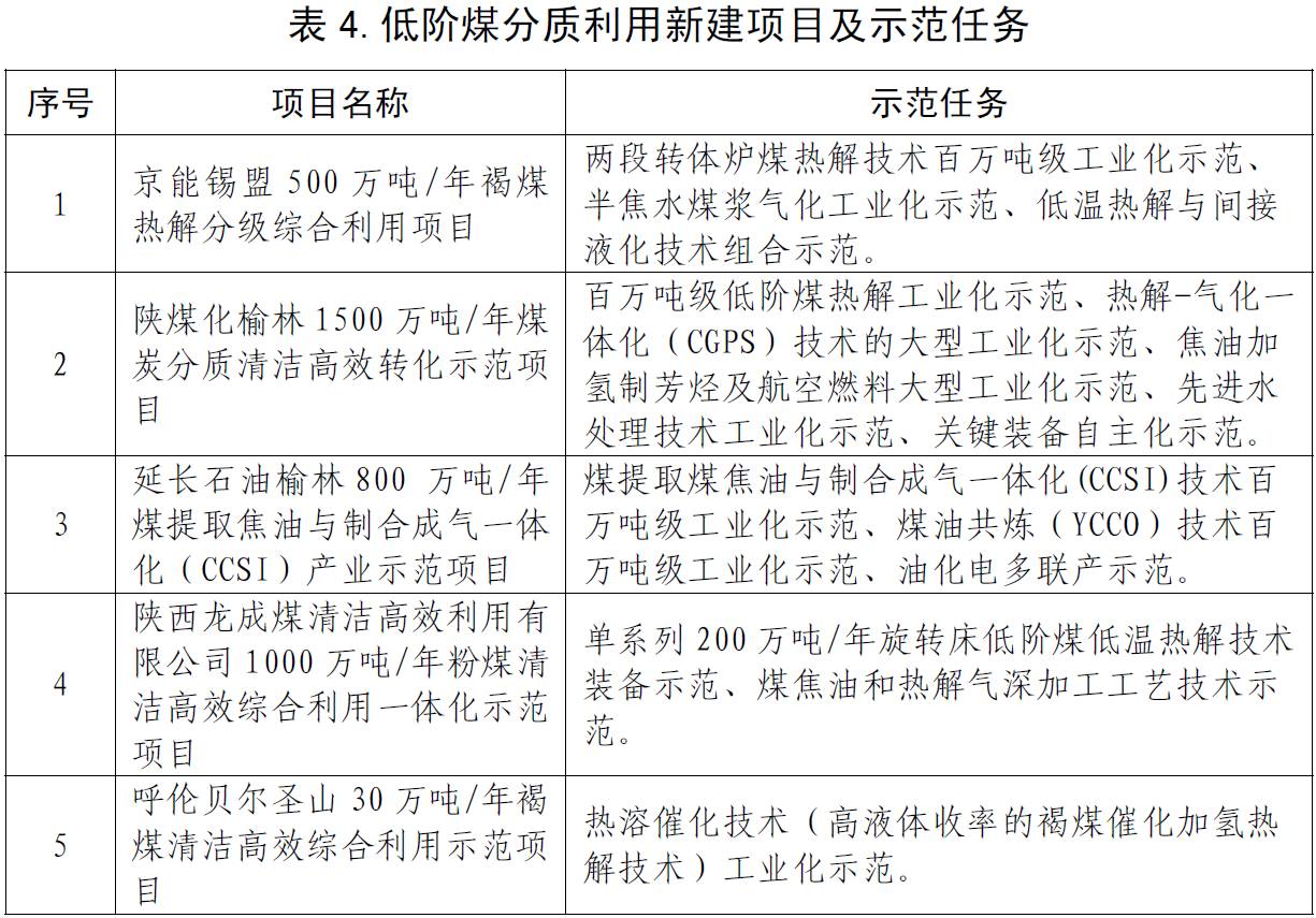 低阶煤分质利用项目5个,储备项目6个。