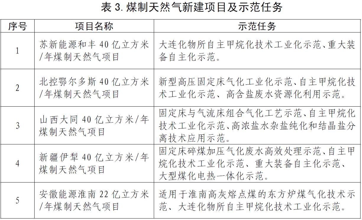 煤制天然气项目5个,储备7个。