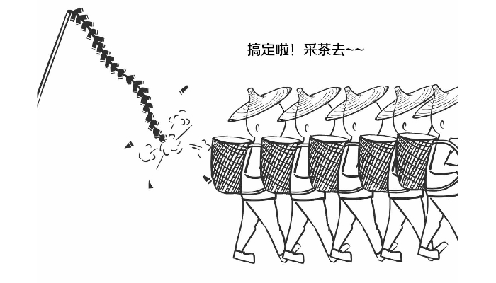 齐声高呼之后,“喊山”仪式的高潮已经结束。接下来,在噼里啪啦的鞭炮声中,茶农们背起准备好的茶篓,开始采茶去!