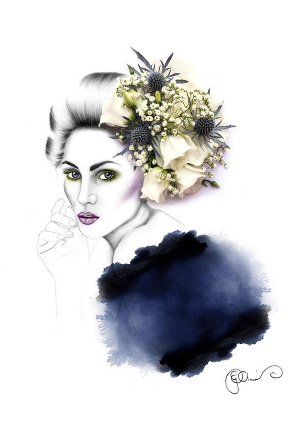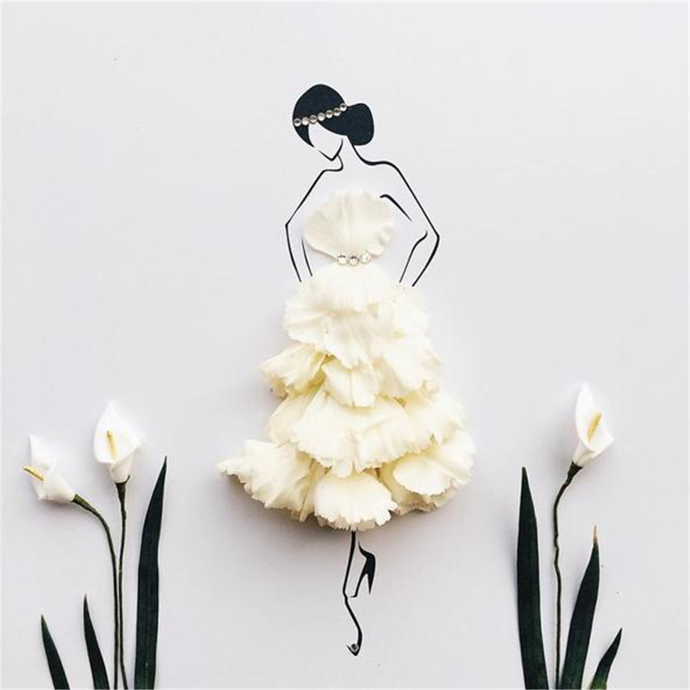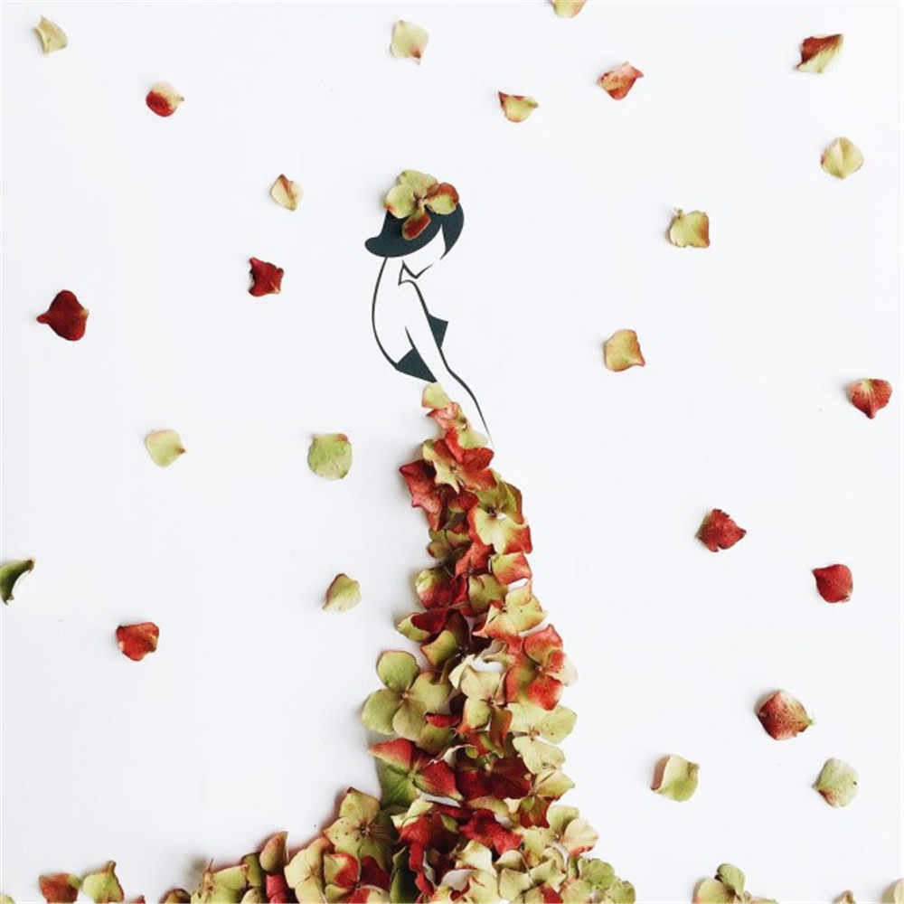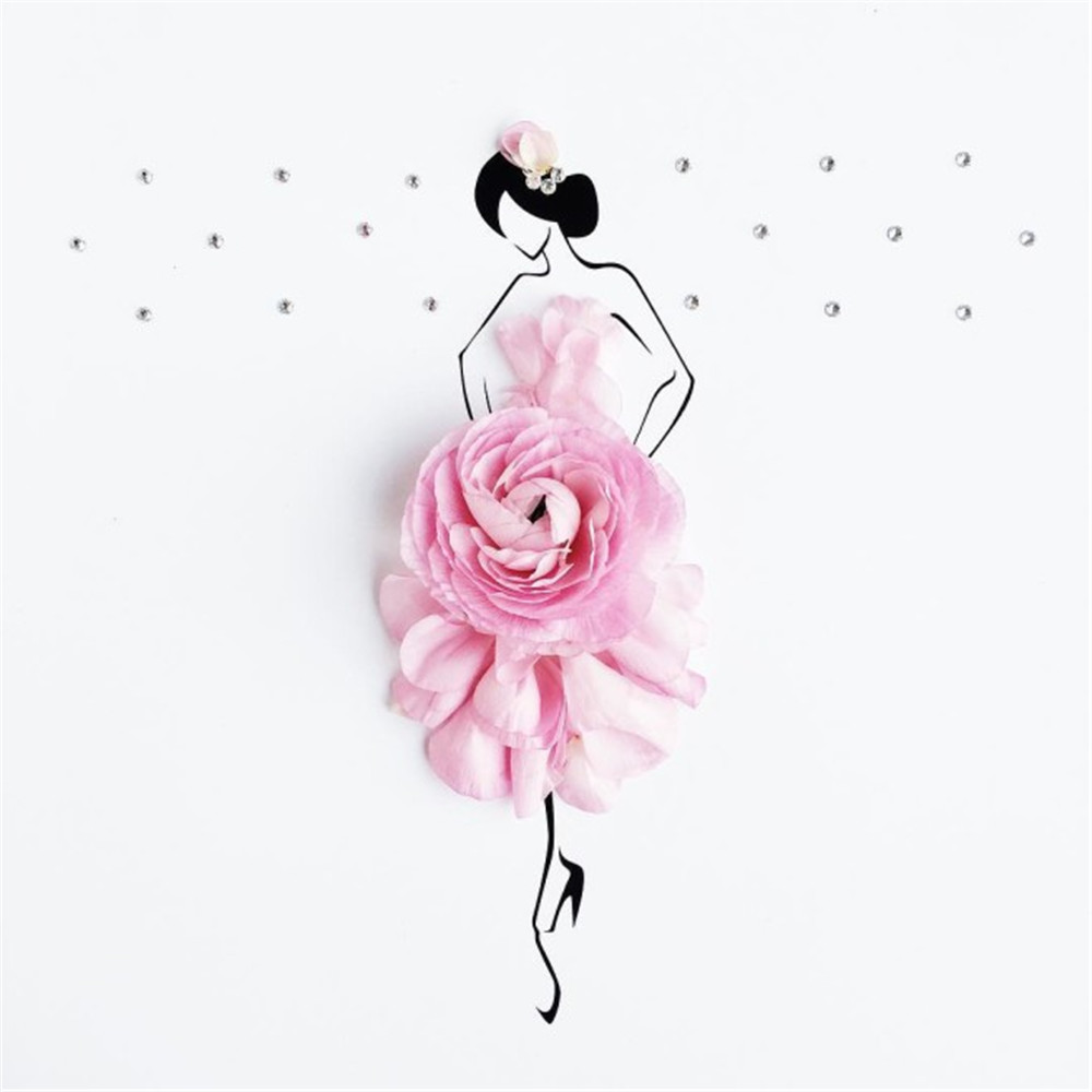 从梦想中汲取因日复一日而失掉的生活热情是常有的事,不过“白日做梦”同样能变得华丽。Georgie St Clair是一位艺术家,她像所有人一样被生活的琐碎缠身,不能实现自己穿上美丽的裙子周游列国的梦想。于是她画了一个“永远在路上”的女孩Sassy du Fleur,Sassy du Fleur穿着花瓣和其他植物做的裙子游走在巴黎、罗马以及所有Georgie St Clair想去的地方。Georgie St Clair有时会根据花的属性匹配创作场景,喜爱温暖的山茶花花瓣就变成了Sassy du Fleur热带风情的裙子。
