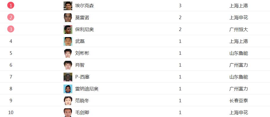 29'肖智,61'雷纳尔迪尼奥