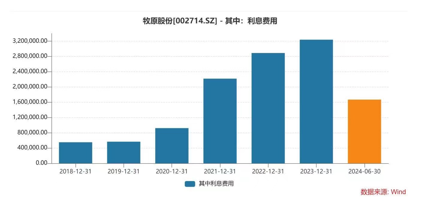 值得注意的是,牧原的融资成本并不低。牧原股份披露,截至2024年6月末,牧原存量贷款加权平均融资成本为4%左右,已有所下降。