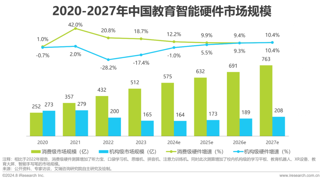 校外消费级575亿,校内机构级164亿,预计2027年共计近千亿元
