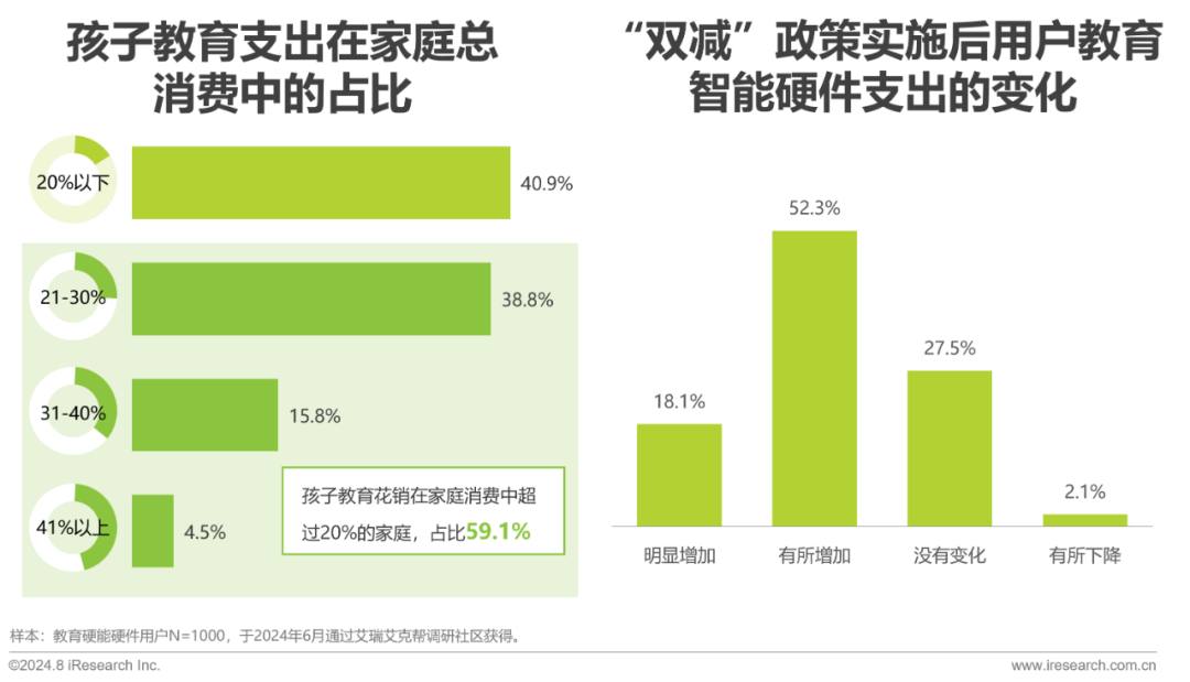用户重视孩子的教育投入,七成家长在双减后增加了教育智能硬件的支出
